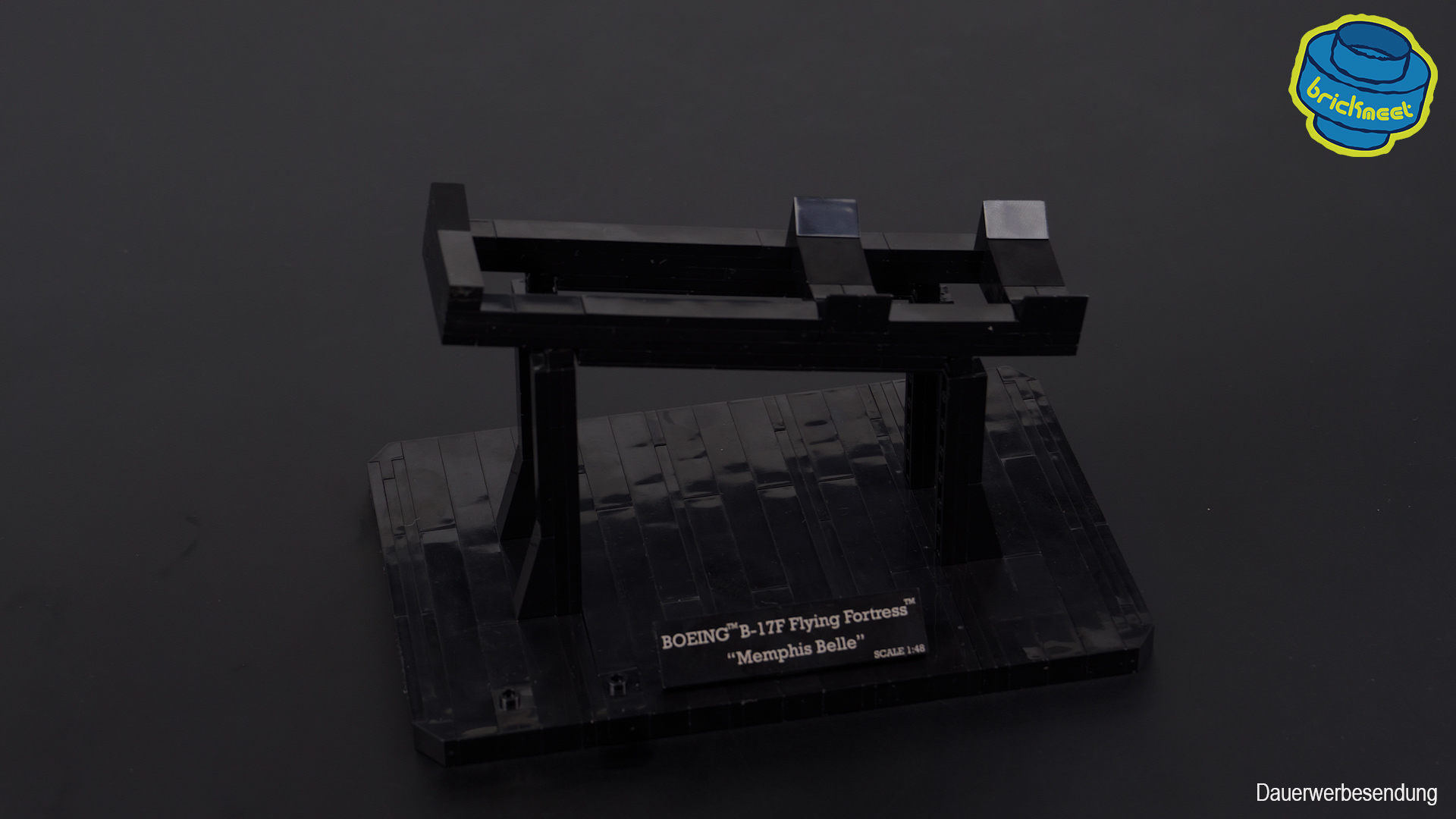 Der Rest ist recht schnell gebaut. Lediglich das Heck und einige kleine Anbauteile wie die Geschütze müssen noch angebracht werden. Dafür dauert der Standfuß ein wenig länger, da dieser sehr groß ausfällt. In diese Konstruktion wird die B-17 quasi hinein gelegt. Auch die beiden Piloten haben ihren Platz auf dem Ständer, da sie nicht zusammen in das Cockpit passen.