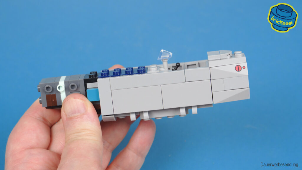 Die Flügel bekommen ebenfalls ein buntes Innenleben und reichlich große Aufkleber. Lediglich einige Kleinteile sind bei diesem Set bedruckt. Der Standfuß ist etwas Besonderes und keine einfache Kopie von COBI. Die Position lässt sich frei einstellen, sodass ich das Flugzeug nach vorne neigen kann, ohne dafür Umbauten vornehmen zu müssen.